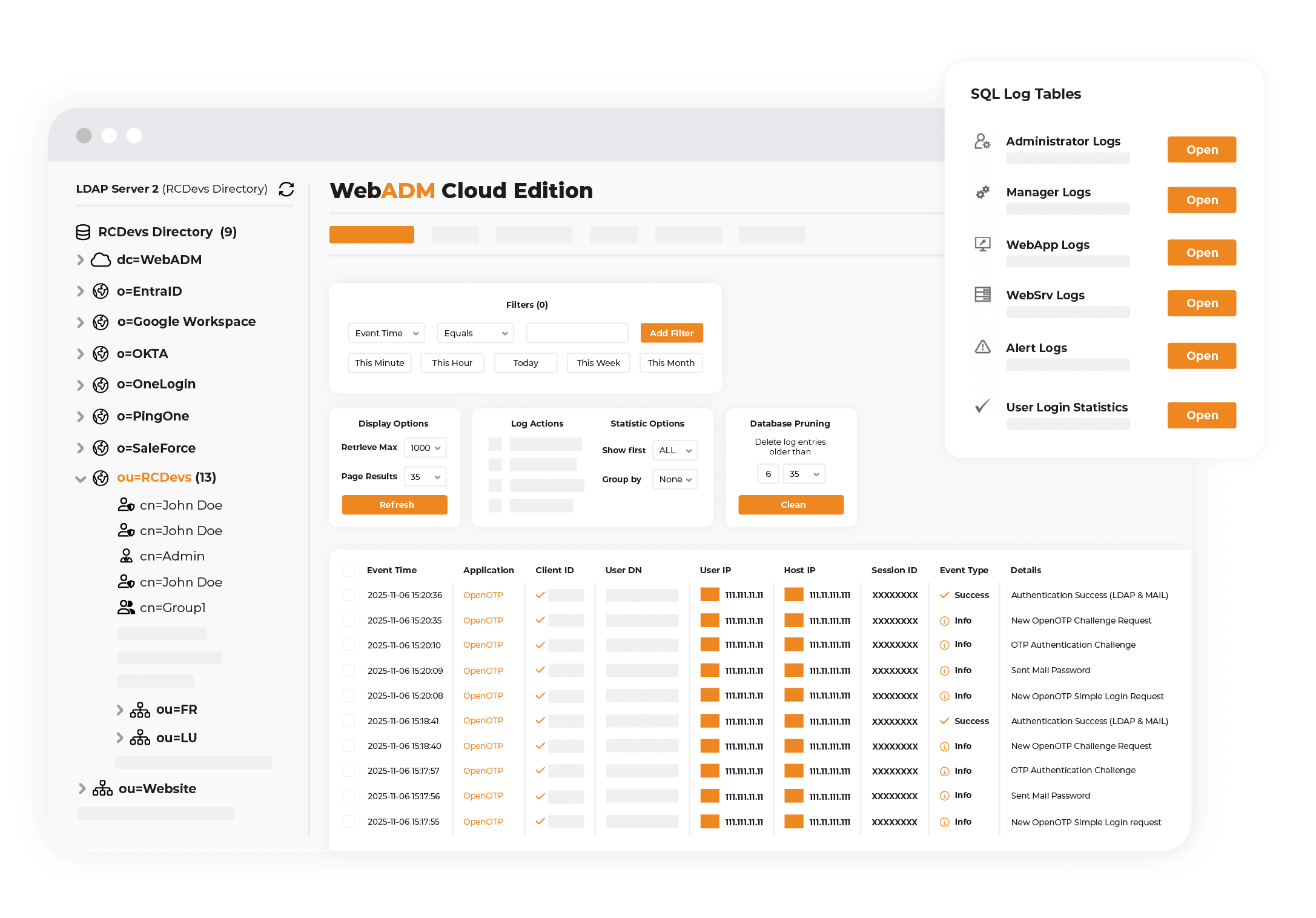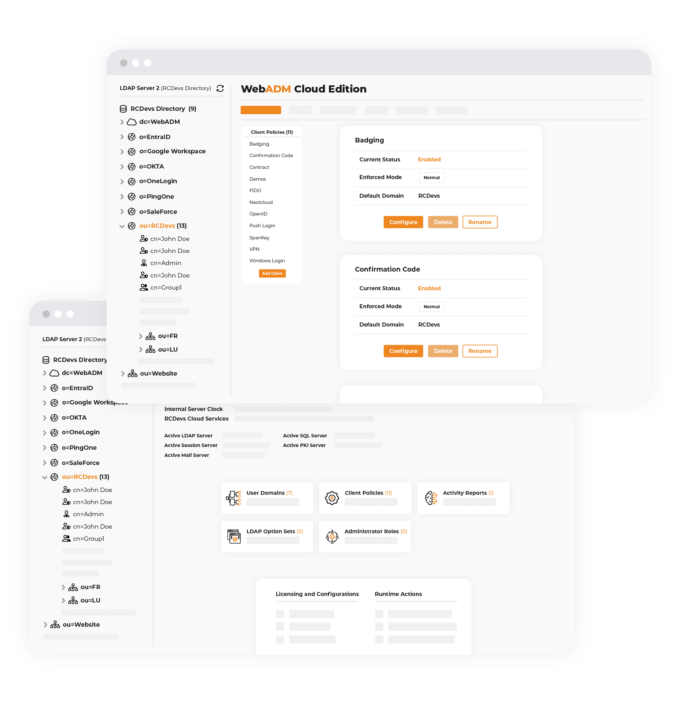 En consolidant ces sources dans une interface de gestion unique, WebADM simplifie l'administration des identités et garantit la cohérence entre tous les systèmes.